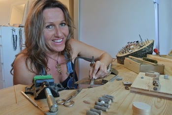 inspiriert durch meine fast täglichen fluss- und bachwanderungen ist riverdesign 2008 entstanden. grenzenlos vielfältig sind die formen und arten, die strukturen und materialen des schwemmholzes. im moment betrachtet, eine wunderschöne komposition. aber nicht die momentaufnahme, sondern die eingeschlossenen geheimnisse der natur, welches das holz auf seiner reise – vom wachsen zum starken baum bis hin zur fahrt durch den reissenden fluss – mitgenommen hat, erzählen seine einzigartige geschichte. eine geschichte, welche ich durch die gestaltung des schwemmholzes zu einem schmuckstück, vertrauensvoll an dich weiterreiche.